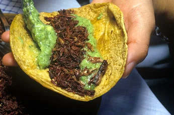 Одно из национальных блюд Мексики — гуакамоле с кузнечиками: насекомых быстро обжаривают, смешивают с авокадо и намазывают на кукурузную лепешку.